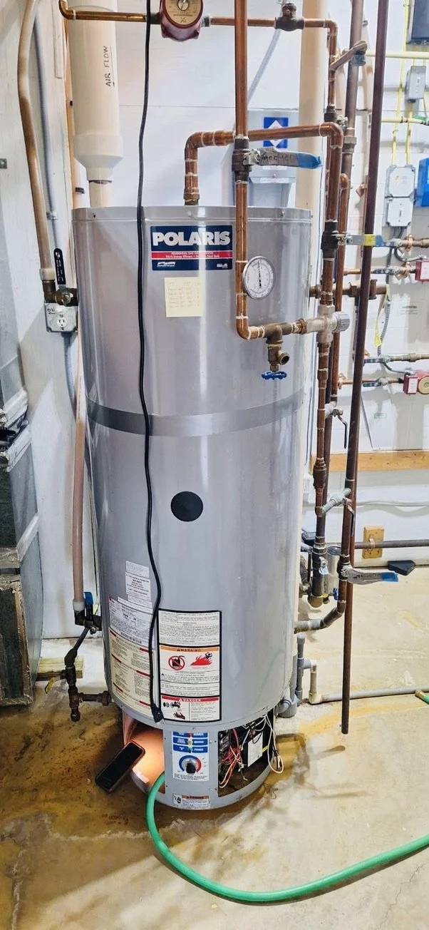 Polaris Water Heater replacement: Since both the domestic hot water and radiant flooring were tied into the old water heater we took the extra effort to source the exact replacement to minimize repiping and downtime